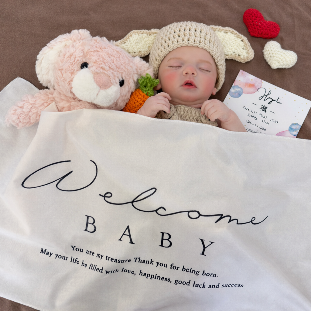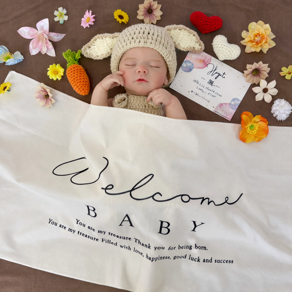 シンプルな背景に「Welcome Baby」の