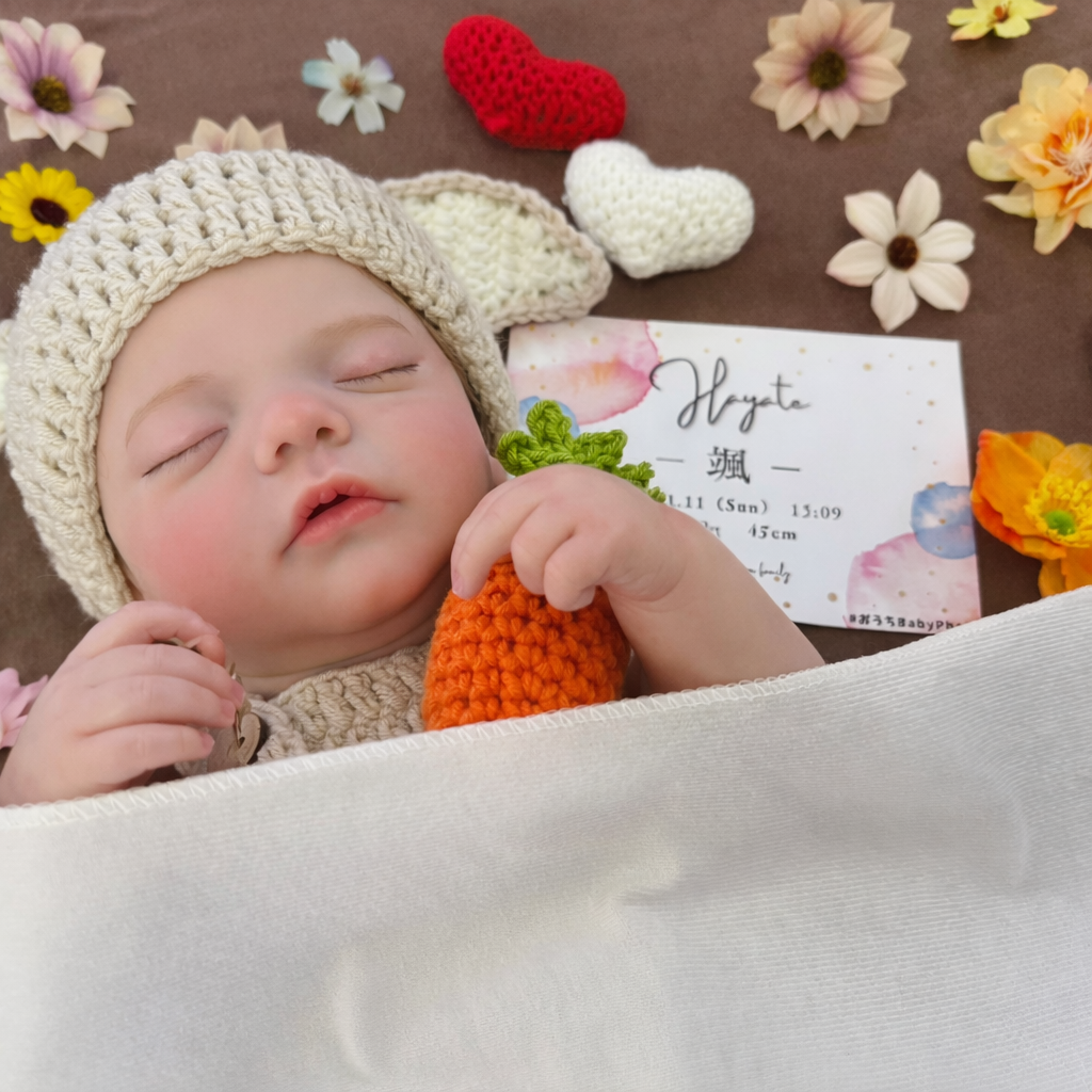 シンプルな構成なので、赤ちゃんを寝かせるだけで自然に整った写真になります。