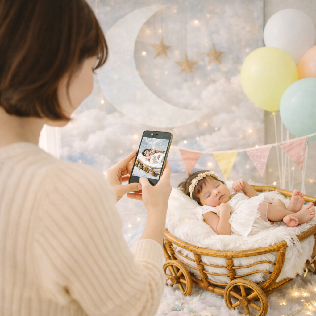 赤ちゃんが落ち着いたタイミングに数枚撮るだけで、満足度の高い写真が残せます。