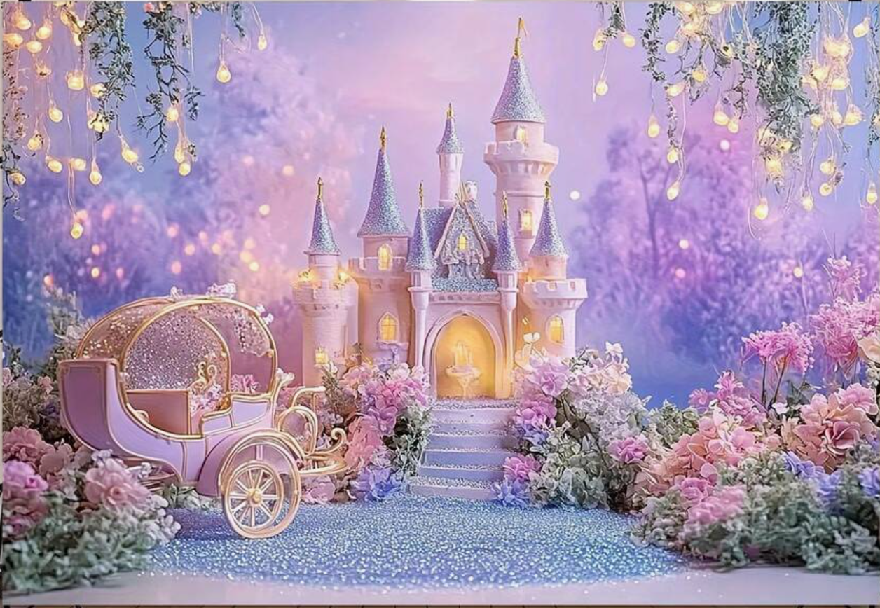 背景にお城とお花の世界観が入っているので、設置した時点で撮影らしさが出ます。紫〜ピンク系の色味が光を受けて、写真がやわらかく見えます。背景が整っていると、小物を盛りすぎなくても写真がまとまります。