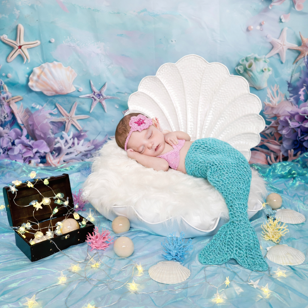海のいちばん静かな時間を、リビングにそっと連れてくる。このマーメイドニューボーンセットは、そんな気配をまとった小さな舞台です。